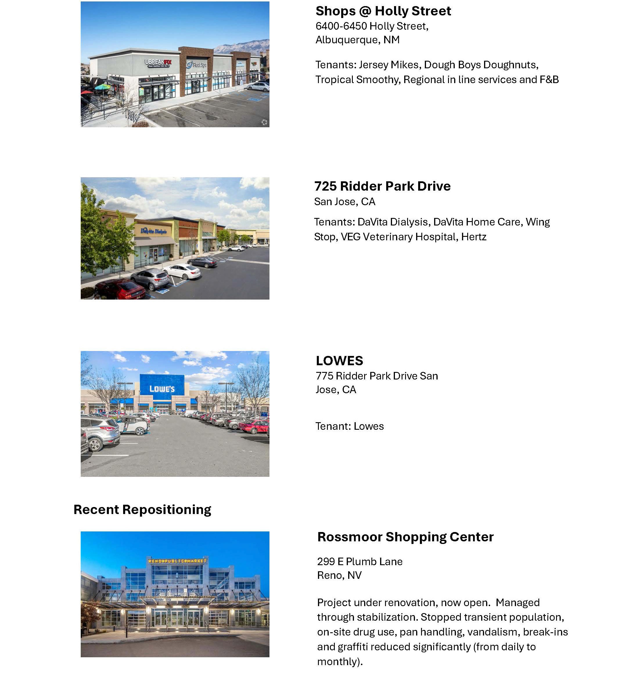 AREAS specializes in creating value through increased occupancy, rent growth, and expense reduction through efficiencies and aggressive management of operating systems, personnel and vendors. The result is increased NOI.